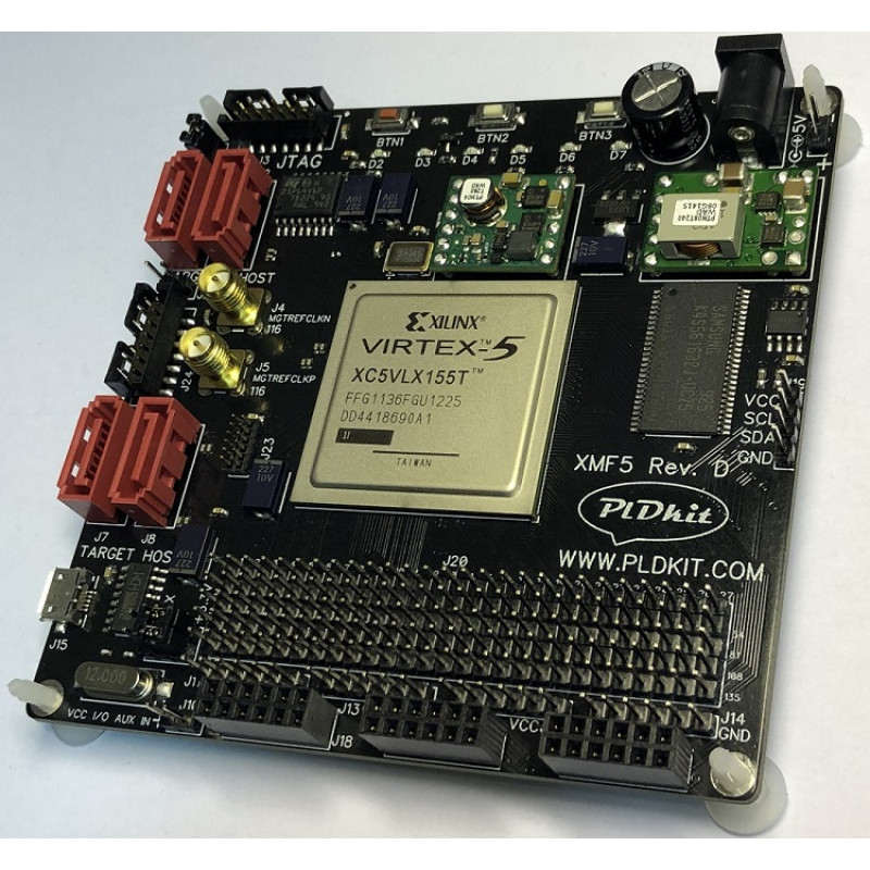 Xilinx Virtex-5 XMF5 FPGA module is designed for rapid prototyping and implementing FPGA projects. Module can be used for educational purposes. Module can work independently, or as control module in a bigger design.